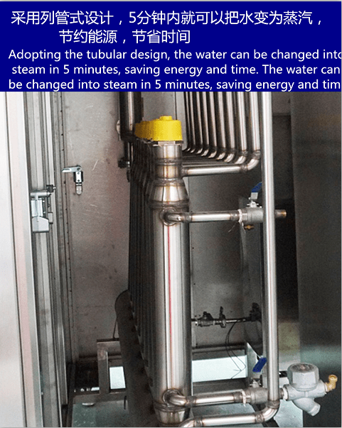 醫用類別的電加熱潔凈蒸汽發生器,采用304不銹鋼列管,其特征在于包括純水水箱、工業蒸汽容積室、蒸汽發生管、電加熱輔助裝置和蒸汽室,蒸汽發生管位于工業蒸汽容積室內部,其底部與純水水箱相通,上部一側的蒸汽出口通過管路與蒸汽室相通,蒸汽發生管內部設有電加熱輔助裝置。具有結構合理、能耗低、工作穩定可靠的優點。以工業蒸汽為主,以電加熱為輔產出潔凈蒸汽,降低了能耗,潔凈蒸汽產出穩定、效率高。這款產品也在2018年獲得國家專利。